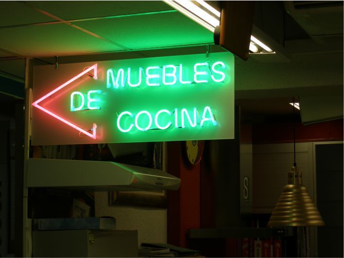 Neón visto sobre placa de metacrilato con vinilo al ácido.